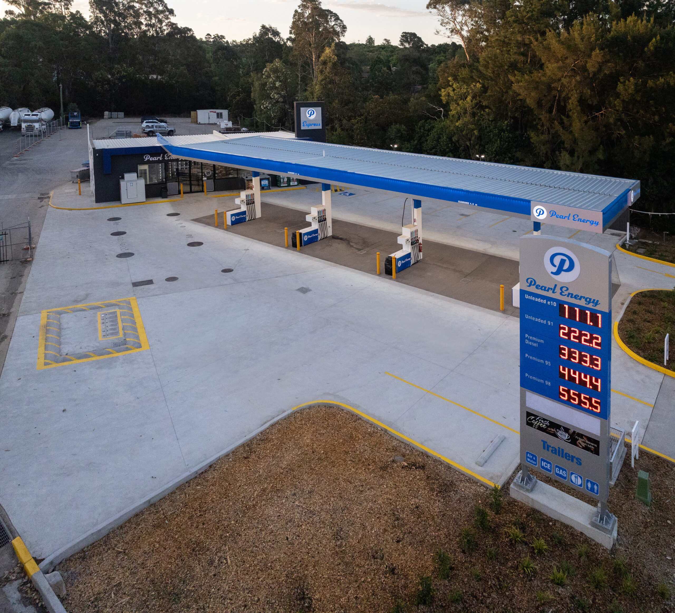 The construction involved significant civil and earthworks to create a natural bio-retention basin and swale system, ensuring rainfall is managed and treated before leaving the site. It is also required install of two underground fuel storage tanks, an oil-water separator tank, four fuel dispensers, 200 square-meter convenience store and approximately 1200 square meters of concrete hardstand.